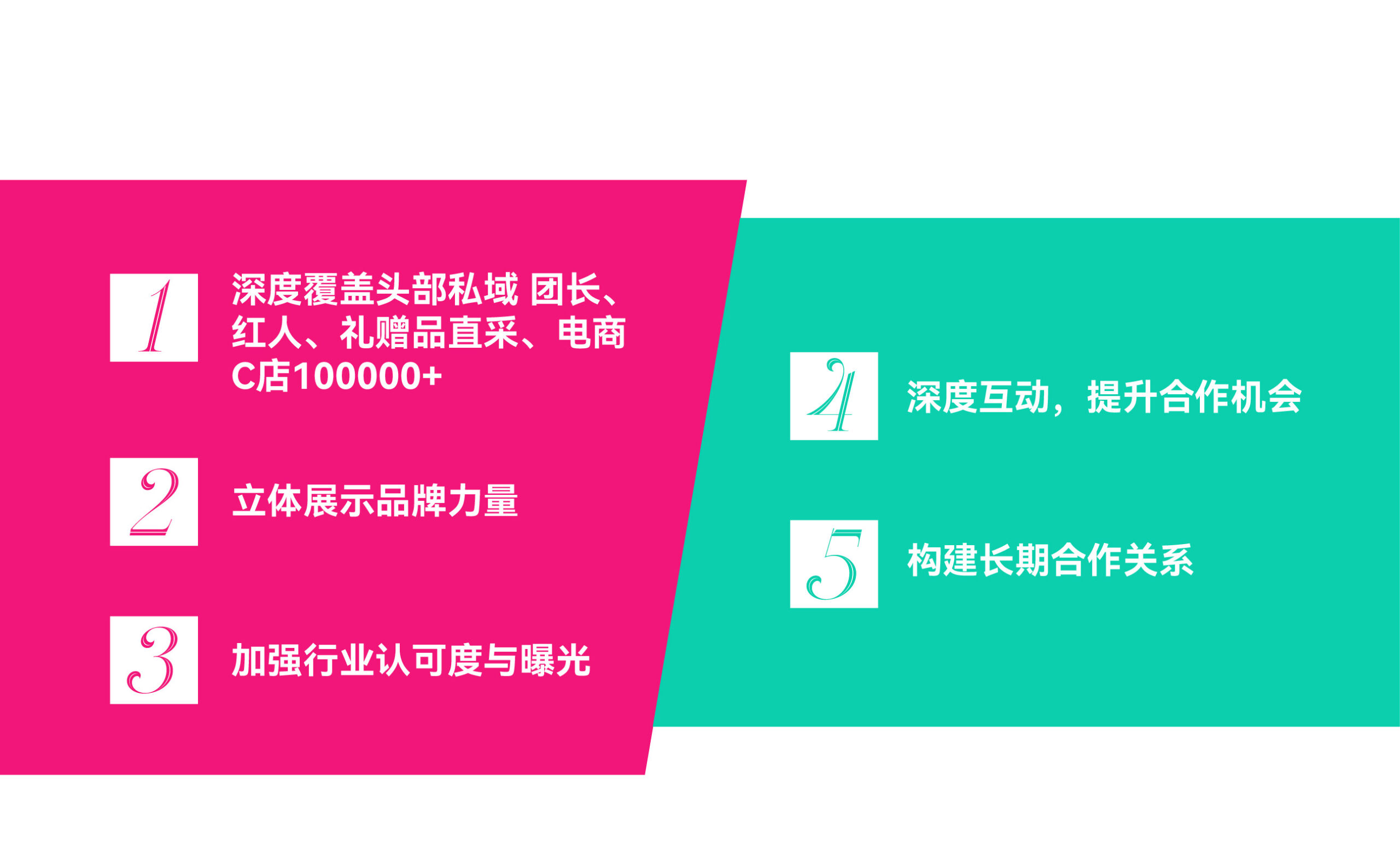 品牌发布:为品牌提供一个权威的 平台,宣布最新的品牌动态、新产 品或合作策略,提升品牌曝光。 新品体验:让流量买手实地感受产 品的质量和特点,加强品牌印象, 促进合作与采购