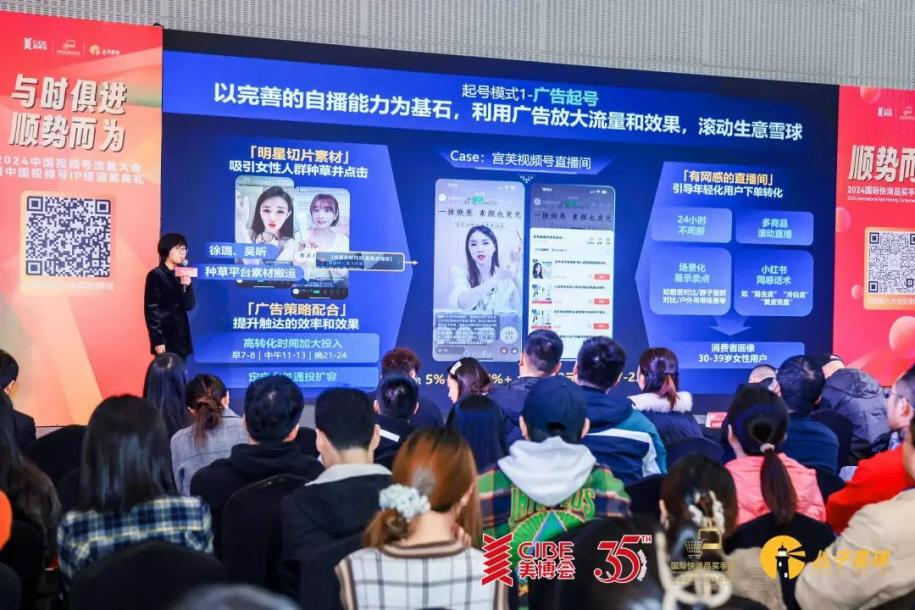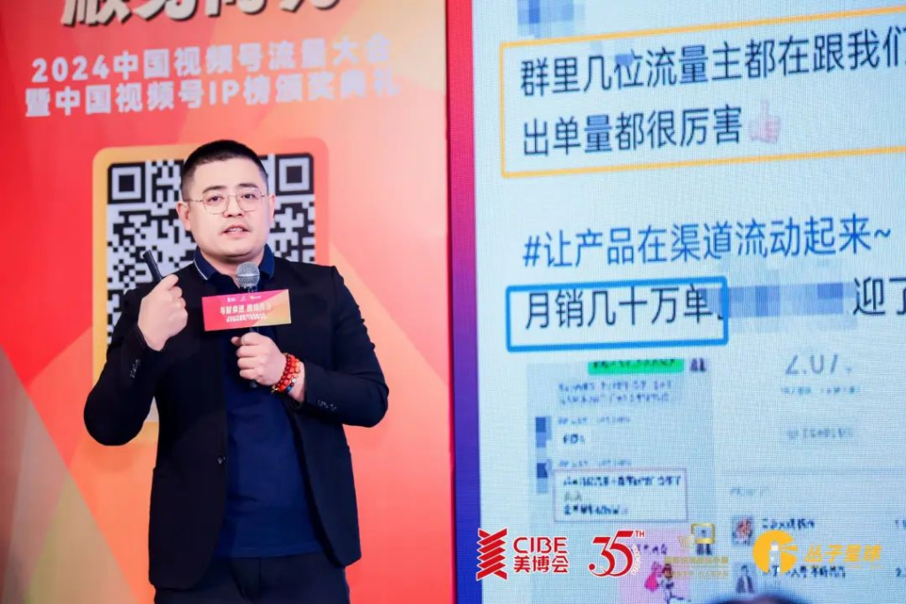 随后,进入本次大会的重要时刻,2024中国视频号IP榜颁奖典礼,为了表彰在2023年表现卓越、创造价值的视频号博主,并进一步推动视频号产业的繁荣与发展,2024年国际快消品买手展特别设立了“中国视频号IP榜”。中国国际美博会副总裁 黄寅许为这些视频号流量主颁发荣誉。